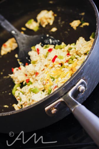 i’ve heard that cooking with fresno peppers adds a good amount of heat and colour with a tad more flavour than a regular jalapeno.  for this reason i didn’t add any salt or pepper to this dish.  also – as it turns out, fresnos are loaded with vitamins!