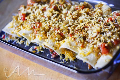 i made enchiladas for cinco de mayo.  i’m just now getting around to posting about it 🙂  as i’ve mentioned before {or maybe i haven’t}, i don’t really celebrate holidays anymore.  i just celebrate the food associated with the holidays 🙂  and since i am not too versed in authentic mexican cooking, i thought i’d just whip up an old favourite.