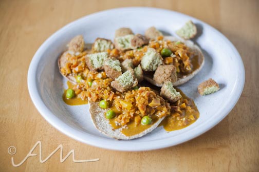 then i took my pitas, toasted them, and smeared with a little organic almond butter to combat the spiciness of the curry. nut butters are good for toning spice, did you know that?! my uncle puts a little PB in his chili, it’s a secret ingredient – and we always serve it with peanut butter and crackers.