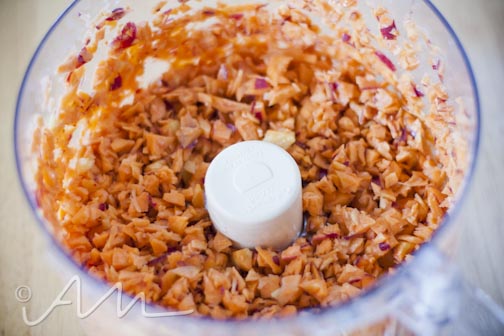 add your carrots and sweet potatoes to a food processor and finely chop…