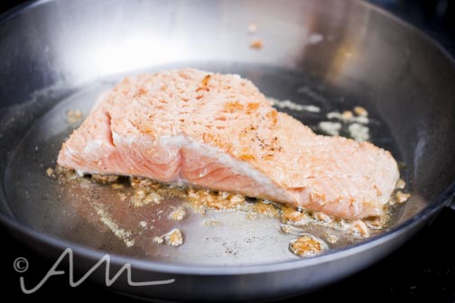 {thirsty thursday} — wild-caught king salmon dressed in basil vinaigrette w/ a rye lager