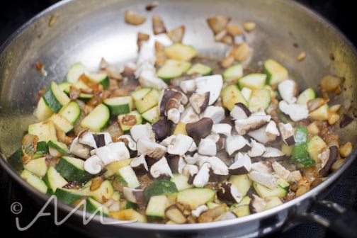 back to your sauce pan, toss in your chopped zucchini and cook that down…