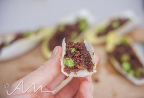 {meatless mondays – kaniwa endive “boats” featuring spring-welcoming english peas}