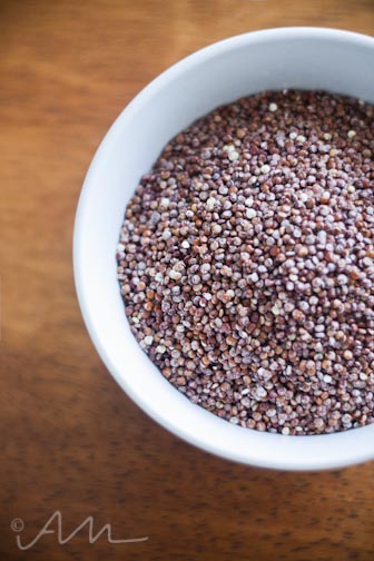 {meatless mondays : red quinoa with grape tomatoes, fresh corn, and black beans}