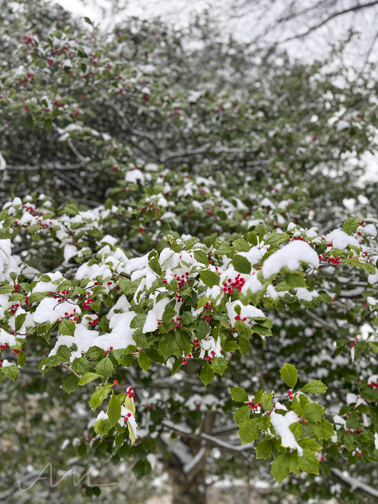 and the holly tree sure looks pretty in the snow!